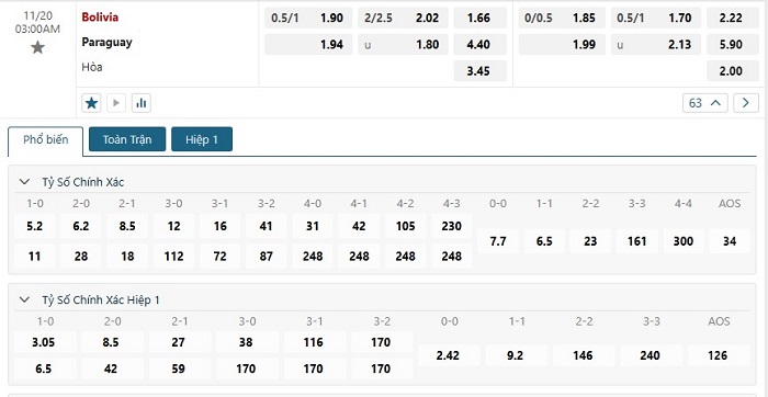 Soi kèo tỷ số Bolivia vs Paraguay