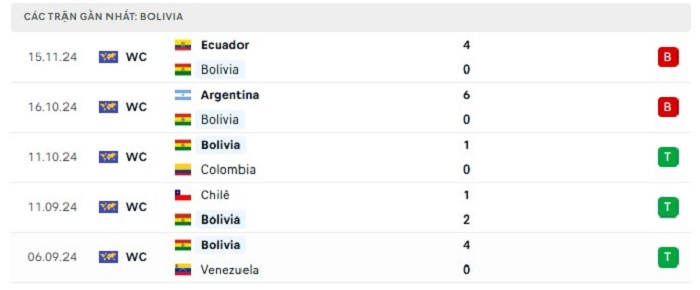• Phong độ Bolivia