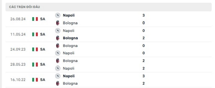 Giữa Bologna và Napoli trong quá khứ vốn cũng không có quá nhiều bàn thắng được ghi, điều này thấy được khi 4 trong 5 trận gặp nhau gần đây của hai đội chỉ có được từ 2 bàn thắng ghi được trở xuống. Hàng thủ của cả Bologna và Napoli tại mùa giải năm nay đều được đánh giá cao về sự chắc chắn cho mình tại giải đấu, đây cũng chính là lý do quan trọng để khó có thể kỳ vọng tới một trận đấu bùng nổ về mặt tỷ số ghi được cho cả hai đội.