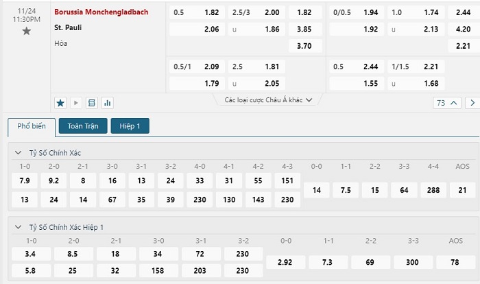 Soi kèo tỷ số Borussia M’gladbach vs St. Pauli
