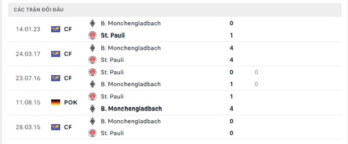 Bảng bóng đá trận đấu Borussia M’gladbach vs St. Pauli