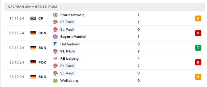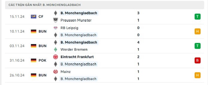 Phong độ gần đây Borussia M’gladbach vs St. Pauli