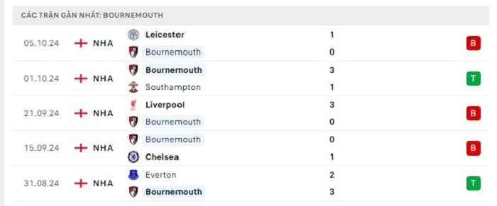• Phong độ Bournemouth