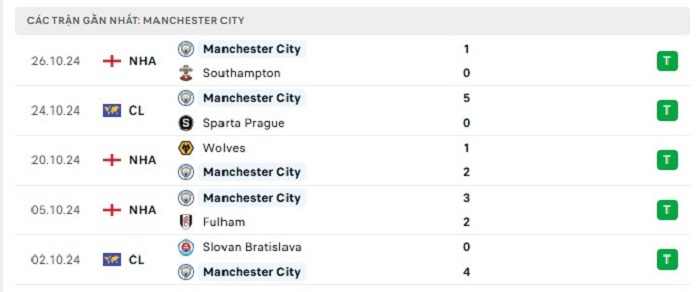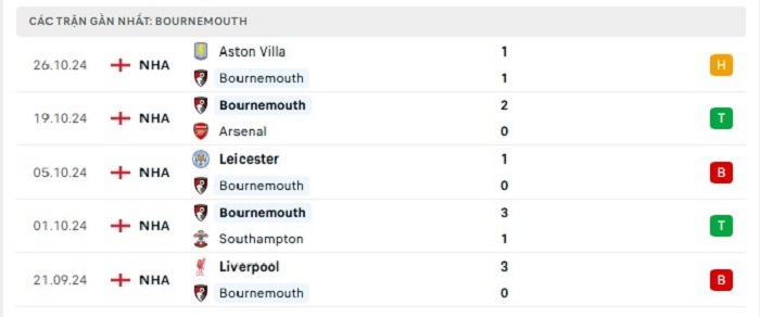 Bảng bóng đá trận đấu Bournemouth vs Manchester City