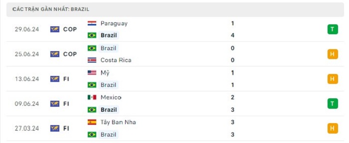 Phong độ gần đây Brazil vs Colombia
