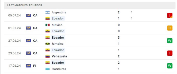 Ecuador: Dominguez, Preciado, Torres, Pacho, Hincapie, Gruezo, M. Caicedo; Minda, Paez, Sarmiento, Rodriguez.