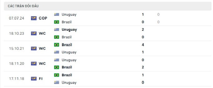 Bảng  bóng đá trận đấu Brazil vs Uruguay