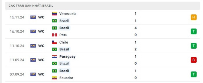 Phong độ gần đây Brazil vs Uruguay