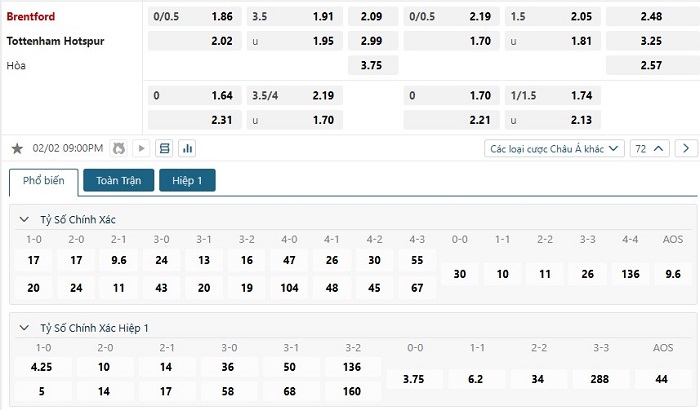 Soi kèo châu Á, kèo chấp Brentford vs Tottenham