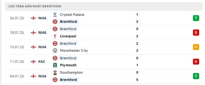 Bảng bóng đá trận đấu Brentford vs Tottenham