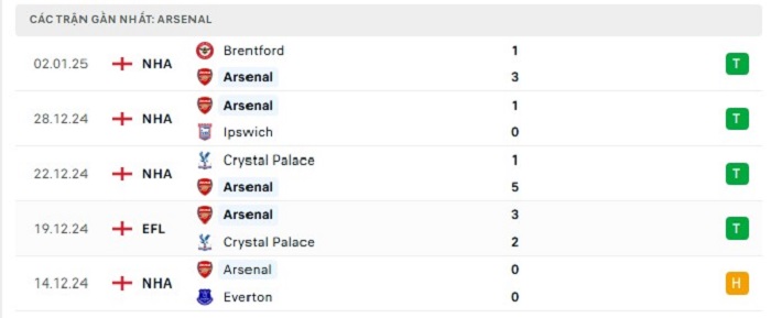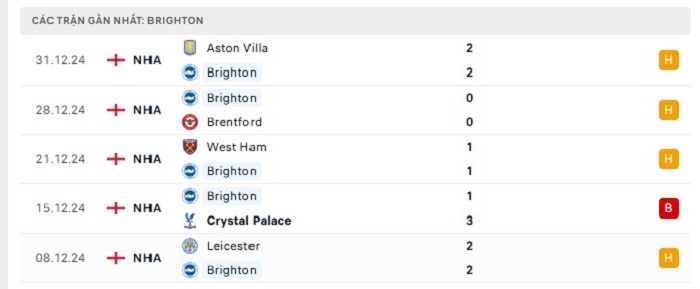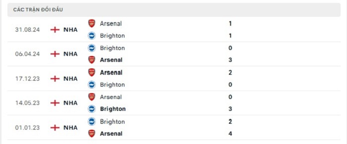 Bảng bóng đá trận đấu Brighton vs Arsenal