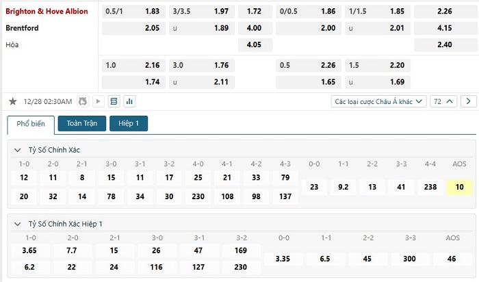 • Dự đoán tỉ số trận đấuBrighton vs Brentford