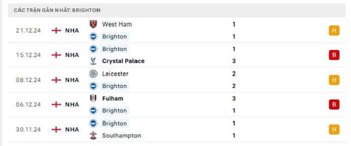 Bảng  bóng đá trận đấu Brighton vs Brentford
