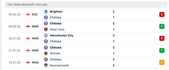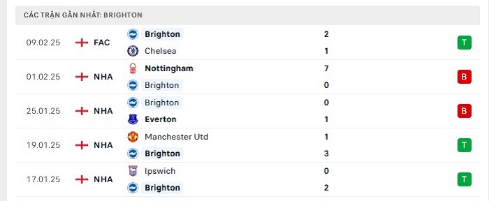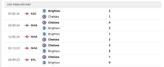 Bảng bóng đá trận đấu Brighton vs Chelsea