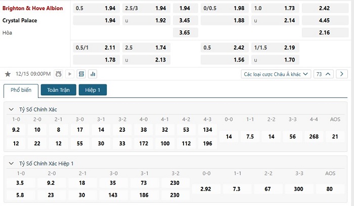 Soi kèo tỷ số Brighton vs Crystal Palace
