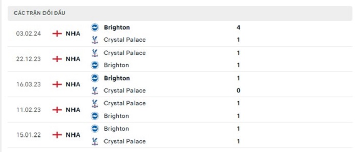 Bảng bóng đá trận đấu Brighton vs Crystal Palace