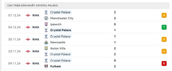 - Phong độ Crystal Palace