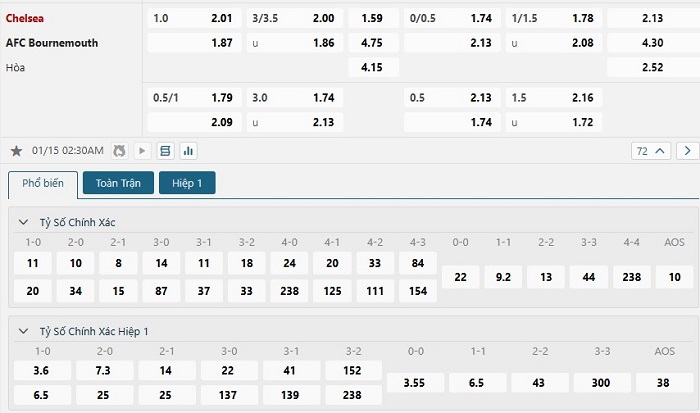 Soi kèo tỷ số Chelsea vs Bournemouth