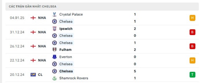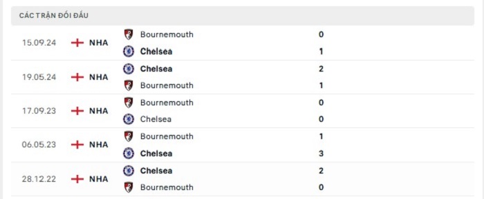 Bảng bóng đá trận đấu Chelsea vs Bournemouth