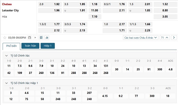 Soi kèo tỷ số Chelsea vs Leicester City