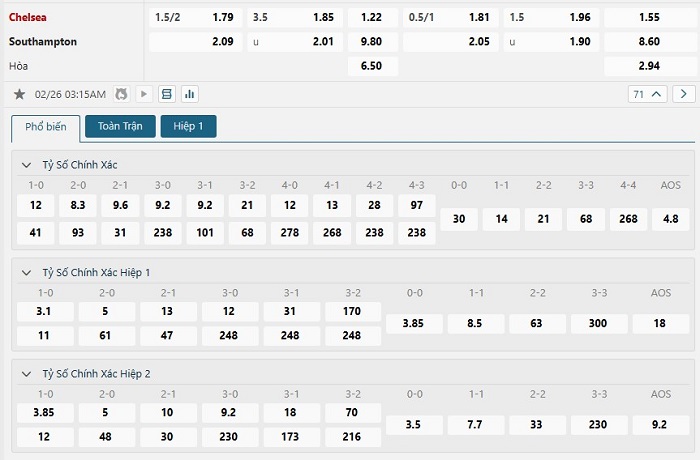 Soi kèo tỷ số Chelsea vs Southampton