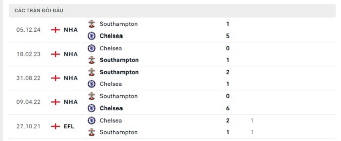 Bảng bóng đá trận đấu Chelsea vs Southampton