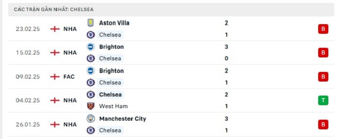 - Phong độ Chelsea