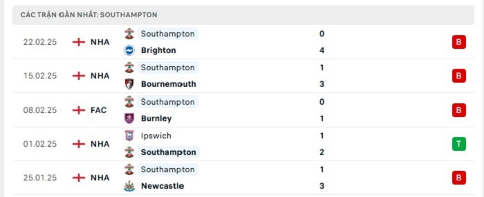 - Phong độ Southampton