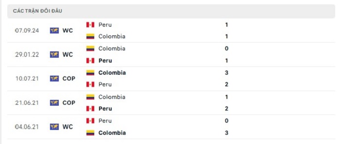 Thống kê trong quá khứ thì các trận gặp nhau giữa Colombia và Peru vốn cũng không có quá nhiều bàn thắng ghi được, điều này cho thấy được giữa hai đội cũng đã thể hiện được lối chơi có những mặt chắc chắn từ trước. Thực tế mà nói với cả Colombia và Peru thì hàng công của họ ở vòng loại khu vực Nam Mỹ hiện tại cũng không thể hiện được quá ấn tượng, bởi vậy mà khó có thể kỳ vọng tới một trận đấu bùng nổ về mặt tỷ số ghi được cho cả hai đội.