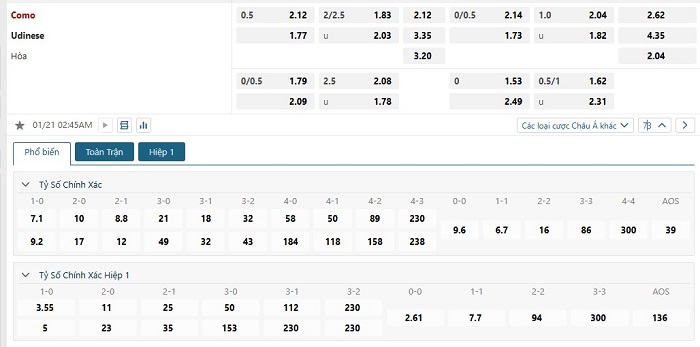 Soi kèo châu Á, kèo chấp Como vs Udinese