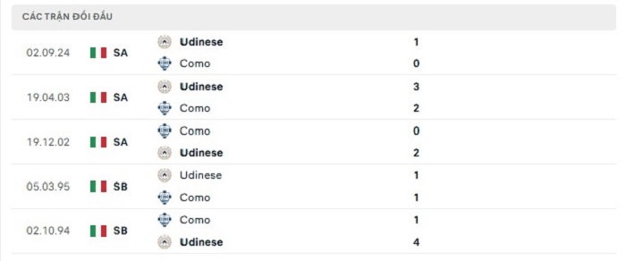Thành tích quá khứ không hề đứng về phía Como khi 5 lần gặp Udinese gần đây họ còn chưa biết tới mùi chiến thắng, thành tích tốt nhất mà họ có được chỉ là 1 trận hoà trong khi nhận tới 4 thất bại theo mốc kèo châu Âu cả trận. Hiện tại với Como họ có được những lợi thế về mặt sân nhà nhưng với Udinese thì phong độ cũng không phải là tệ ở trên sân khách, do đó mà khả năng bất phân thắng bại của hai đội ở trận đấu này cũng trở nên khả thi hơn.