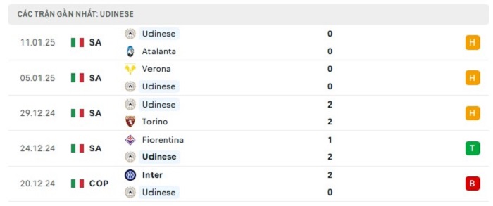 - Phong độ Udinese