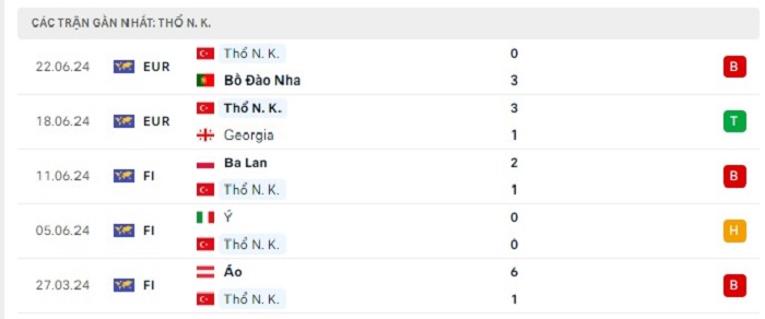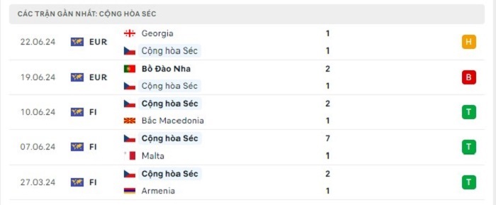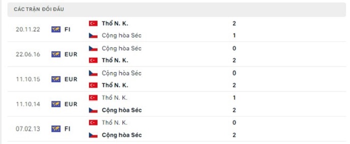 Phong độ gần đây Cộng hoà Séc vs Thổ Nhĩ Kỳ