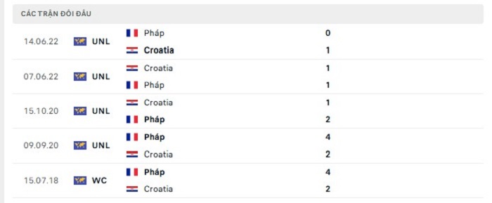 Phong độ gần đây Croatia vs Pháp