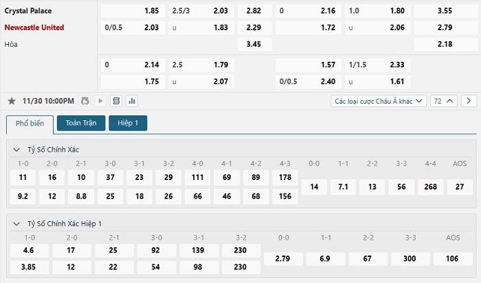 Soi kèo tỷ số Crystal Palace vs Newcastle