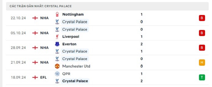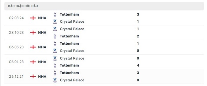 Bảng bóng đá trận đấu Crystal Palace vs Tottenham