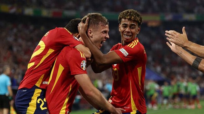 Tây Ban Nha: Raya, Porro, Laporte, Cubarsi, Cucurella, Zubimendi, Ruiz, Yamal, Pedri, Oyarzabal, Morata.
