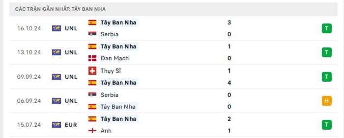 Phong độ gần đây Đan Mạch vs Tây Ban Nha