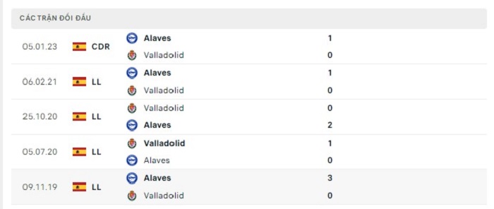 Bảng bóng đá trận đấu Deportivo Alaves vs Real Valladolid