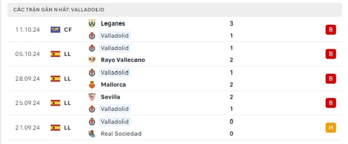 - Phong độ Real Valladolid
