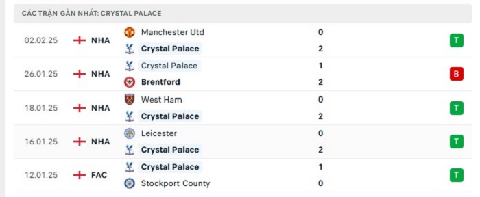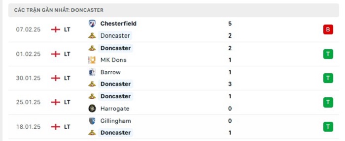 Phong độ gần đây Doncaster Rovers vs Crystal Palace