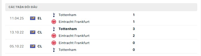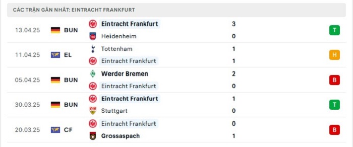 Phong độ gần đây Eintracht Frankfurt vs Tottenham