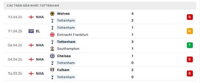 - Phong độ Tottenham