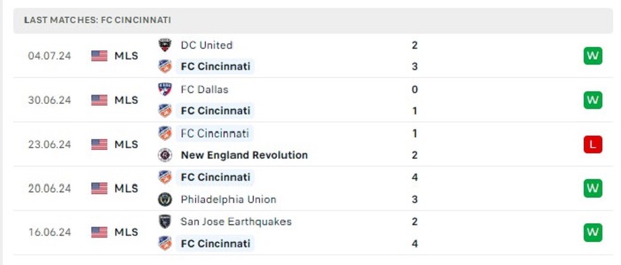 - Phong độ FC Cincinnati