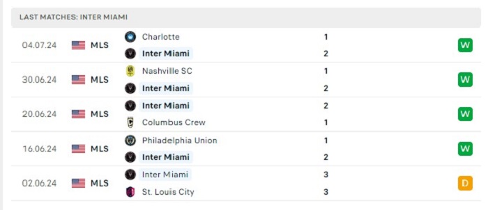 - Phong độ Inter Miami