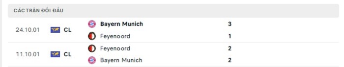 Bảng bóng đá trận đấu Feyenoord vs Bayern Munich