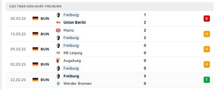 Phong độ gần đây Freiburg vs Borussia Dortmund