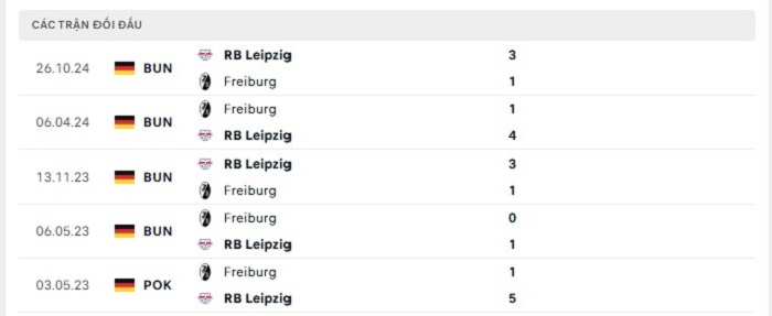Phong độ gần đây Freiburg vs RB Leipzig