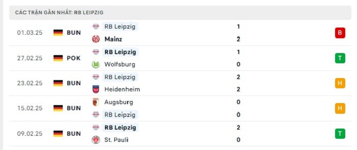 - Phong độ RB Leipzig