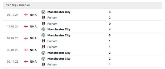 Thành tích trong quá khứ với Manchester City họ có sự vượt trội hoàn toàn so với Fulham, thật vậy khi mà đội bóng thành phố London vẫn chưa thể tạo nên được bất ngờ trước đối thủ với 10 lần gặp nhau gần đây toàn thua theo mốc kèo châu Âu trước đối thủ đã cho thấy trình độ và sự yếu kém của họ, mặt khác với Manchester City thì phong độ họ đang thể hiện gần đây cũng không hề tồi ở sân chơi Ngoại hạng Anh, bởi vậy mà với Manchester City việc họ có một thắng lợi theo kèo châu Âu ở trận sắp tới cũng không quá bất ngờ.
